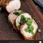 Juicy pork tenderloin wrapped in smoky bacon, kissed by the grill, and finished with a fresh chimichurri. That’s dinner done right.
