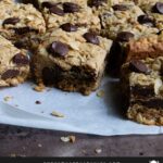 These oatmeal chocolate chip cookie bars are a thick and chewy delicious treat.